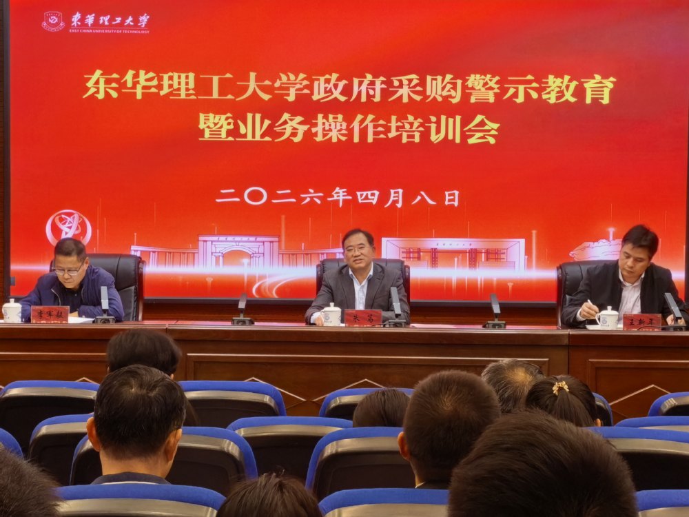 为进一步规范学校政府采购工作,强化廉洁自律意识,提升采购业务数字化水平,4月8日,东华理工大学在广兰校区召开政府采购警示教育暨业务操作培训会议。校党委常委、副校长朱笃出席会议并讲话,驻校纪检组作专题警示教育。